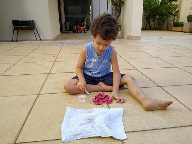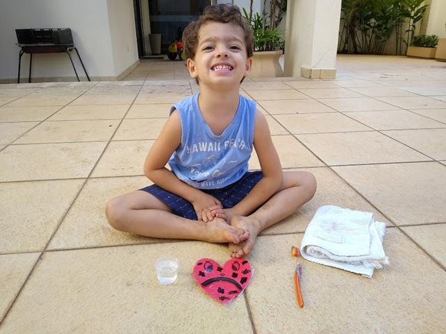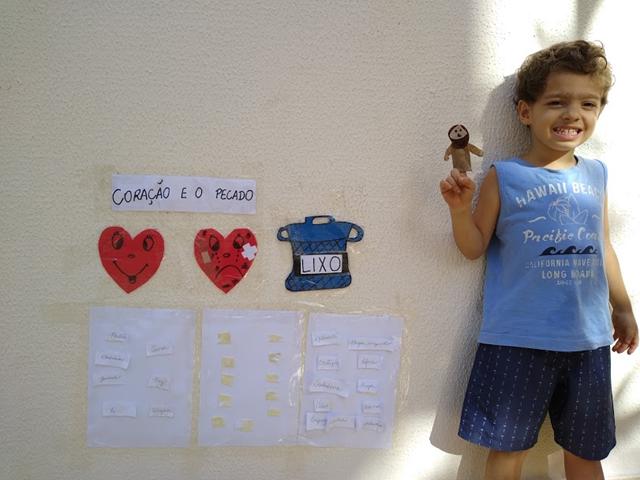 Após o ensinamento, a mamãe disponibilizou para o Davi Antonios uma escova de dente para limpar o coraçãozinho de todo pecado. E quando pecamos e confessamos a Deus, nos arrependemos, Ele vem e perdoa e nem se lembra mais... Daí vamos tirando as manchinhas e o coração fica feliz e limpinho.