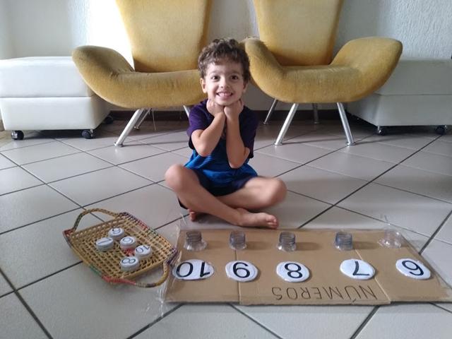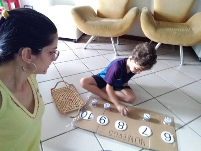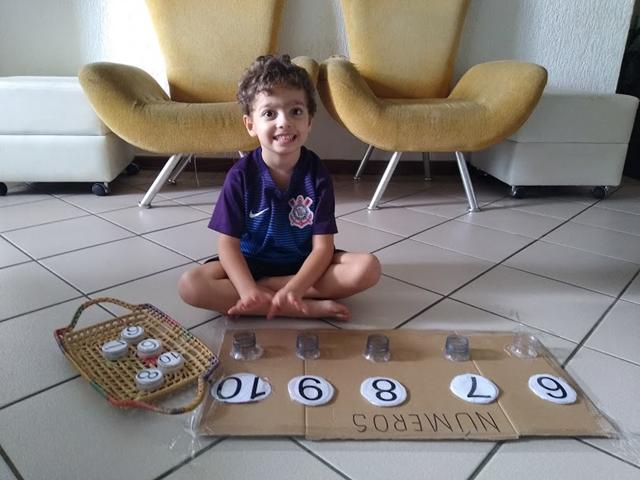 O objetivo da atividade é fechar a tampa de acordo com os cartões dos números.