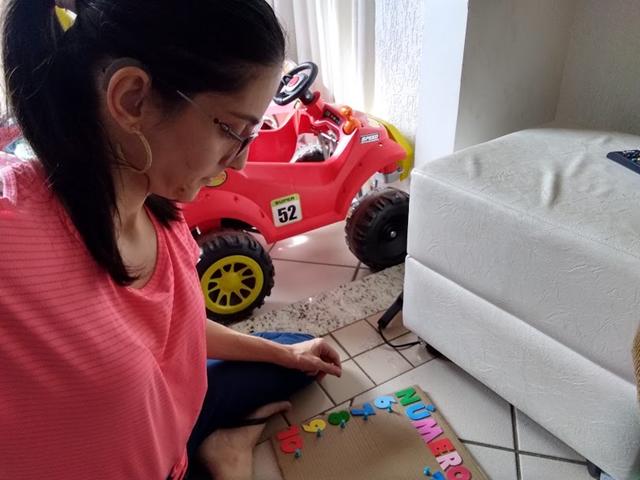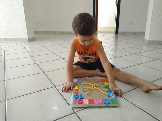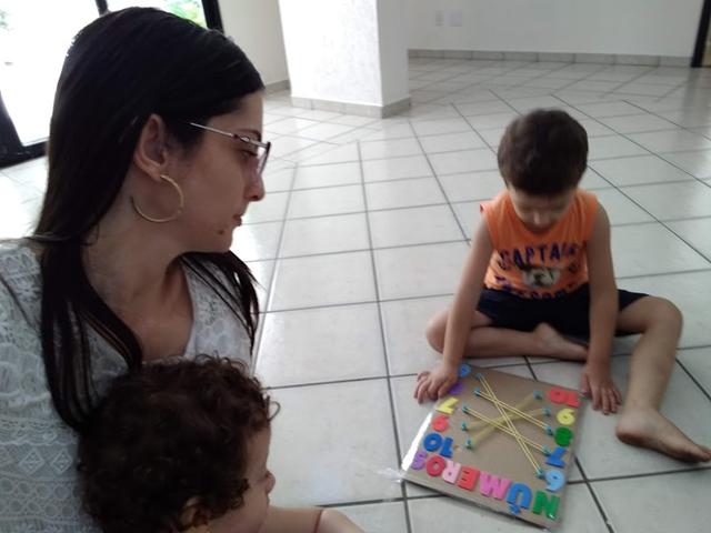 Gostamos muito de fazer essa atividade, que envolve coordenação visual e motora. Pareamento de números trabalhando o movimento de pinça, muito importante para a coordenação motora fina. Indiretamente, favorece a concentração, organização e reconhecimento visual.