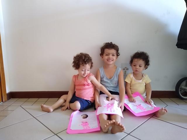 Ao término da atividade se encantaram com o resultado final. Foi gratificante ver o rostinho de felicidade de cada um ao concluírem a atividade e poder entregar para mamãe sua ‘obra de arte’. #maeemdia #brincarjunto #tempojunto #maternidadereal #maternidadeativaeconsciente #educandocomamor #DaviAntonioscom3anose9meses #Helenacom1anoe7meses #Júliacom1anoe3meses