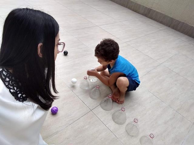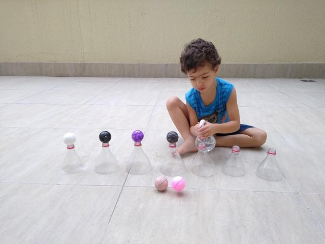 SOL, ÁGUA, SORRISOS E BRINCADEIRAS. Todas essas palavras me lembram do verão! BOLA DE ISOPOR NUM BORRIFADOR + GARRAFA PET + CRIANÇA ANIMADA = Uma atividade linda e divertida! No calor, Davi Antonios adora brincar com água, a mamãe fez os cortes da garrafa pet com bola de isopor e o objetivo é derrubar a bola ao ouvir da mamãe do reconhecimento das cores (ROSA, ROXO, MARROM, BRANCO, PRETO, BEGE E CINZA). Além disso, trabalhou habilidades como atenção, coordenação motora fina, coordenação visomotora, planejamento, flexibilidade cognitiva, noção espacial, estruturação de ações, força, destreza, interação, cores e muitas risadas!! Ele curtiu demais e ainda brincou muito. #maeemdia #brincarjunto #tempojunto #maternidadereal #maternidadeativaeconsciente #educandocomamor #DaviAntonioscom3anose9meses