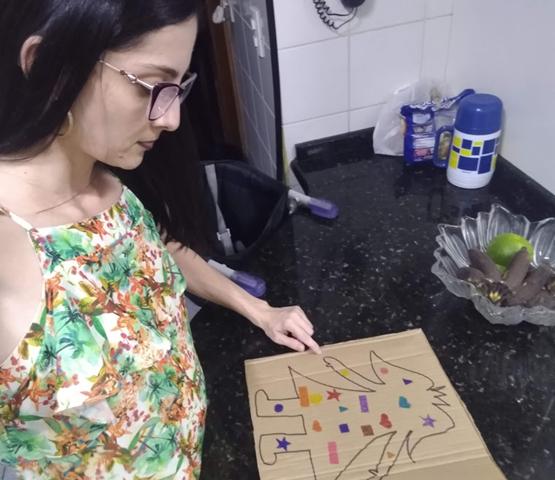 Atividade do dia: A SUA PRIMA HELENA MACHUCADA COM AS FORMAS GEOMÉTRICAS.