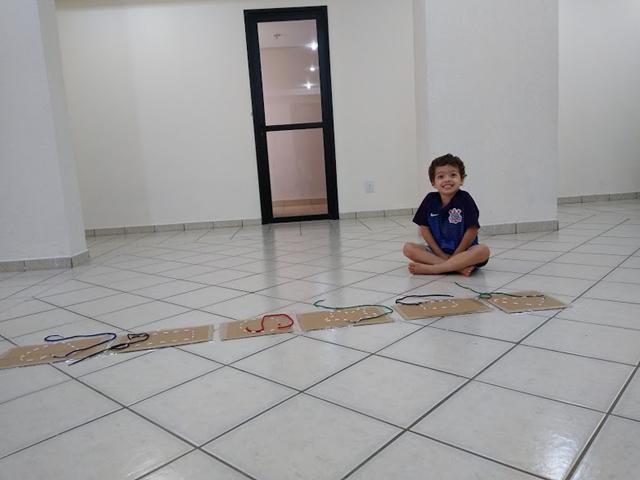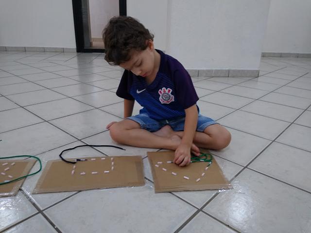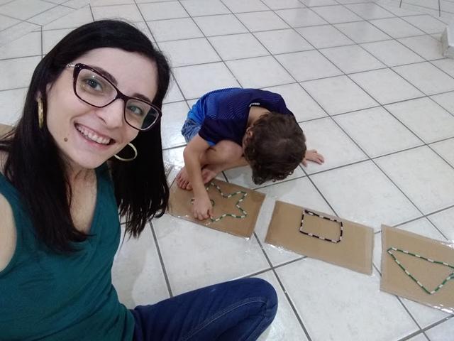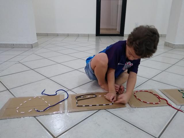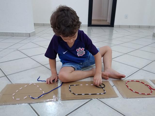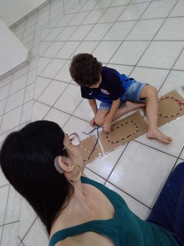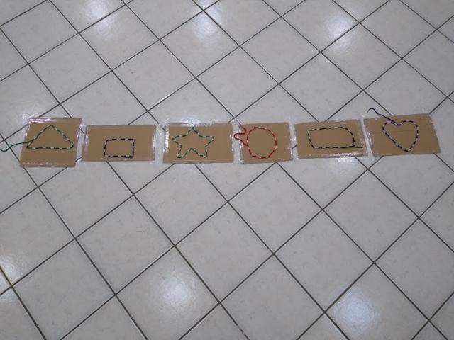 Que tal brincar de passar os cadarços nas formas geométricas?