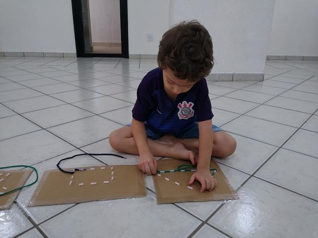 O alinhavo desenvolve a coordenação motora fina, orientação espacial, concentração e lateralidade.