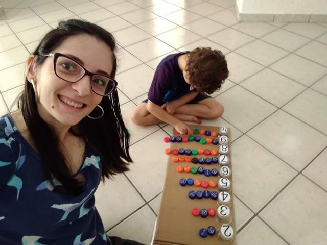 Aprender matemática brincando é muito mais produtivo e divertido: TAMPINHAS DE GARRAFA PET.