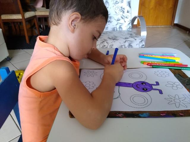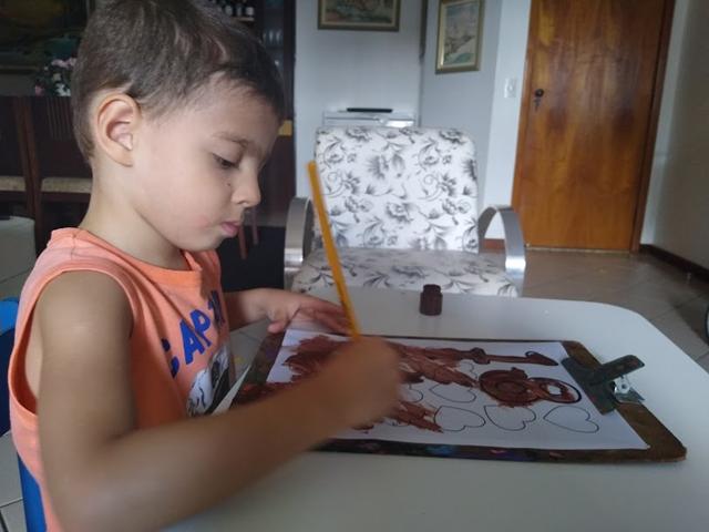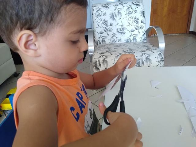 Nesta atividade, foi utilizado o recorte e colagem, uma atividade divertida que ajuda na coordenação motora.