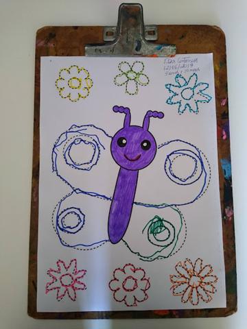 - Cobrir os pontilhados em forma de uma borboleta e flores;