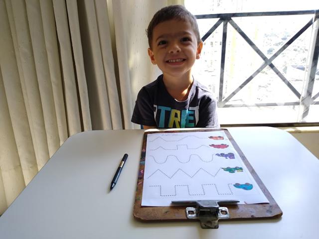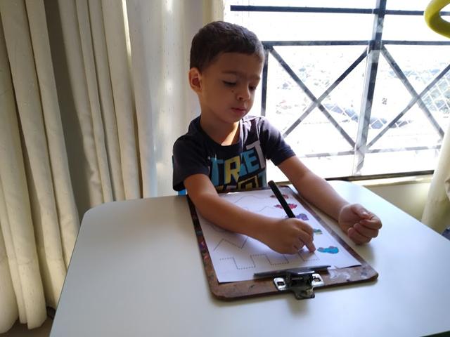 Davi Antonios acordou animado e disse: “Mamãe, quero fazer lição”. E ele escolheu.