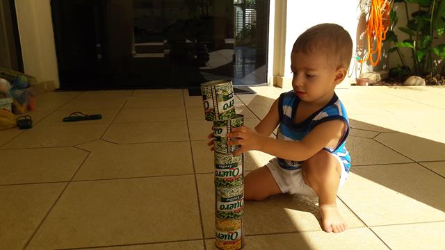 Davi Antonios simplesmente abriu o armário da vovó Fátima na cozinha de snacks e começou a pegar as latas de milho, de ervilhas quando tinha 16 meses. Observando isso, eu ofereci novamente latas para brincar de empilhar e ele simplesmente adorou e rapidamente começou a empilhar tudo facilmente e com interesse. Trabalha com treino de motricidade fina (habilidade empilhar). #maeemdia #brincarjunto #tempojunto #maternidadereal #maternidadeativaeconsciente #educandocomamor #DaviAntonioscom1anoe9meses