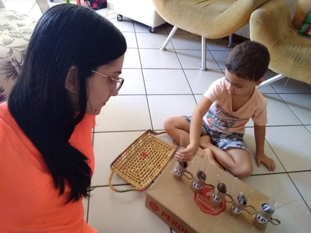 A mamãe elaborou com baixo custo, geralmente utilizando materiais recicláveis para ajudar na estimulação da leitura e escrita da criança.