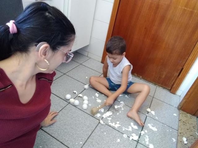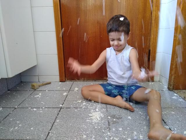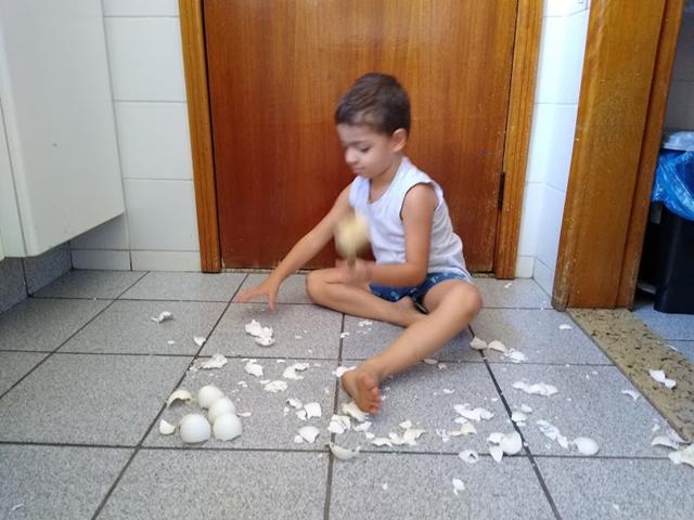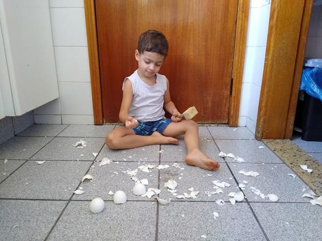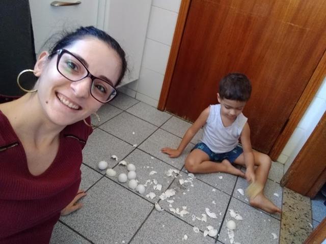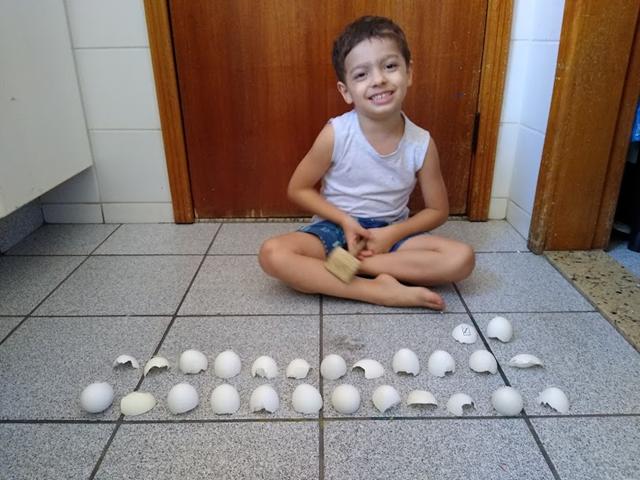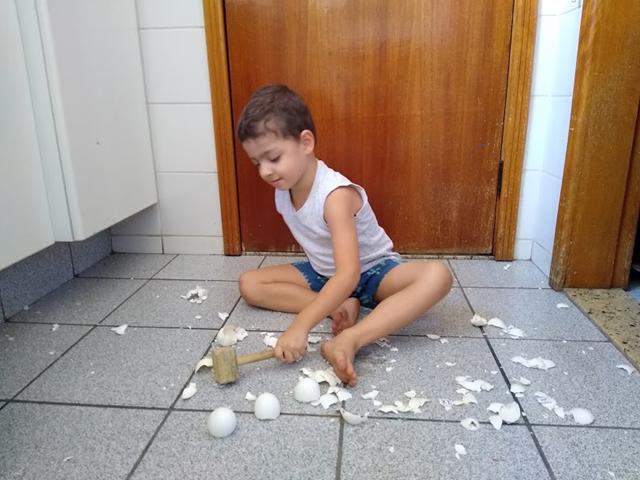 Quebrar as cascas de ovos é uma atividade super gostosa.
