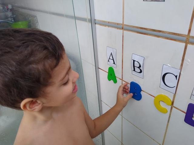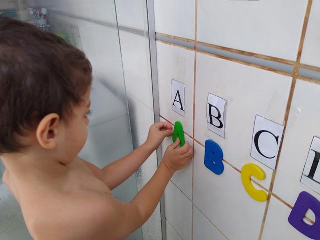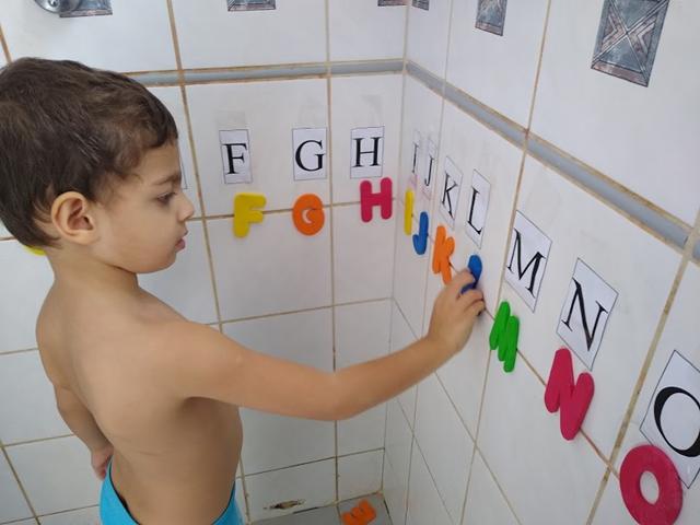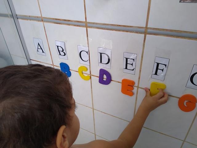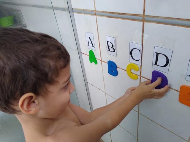 A nossa atividade é BANHO COM ALFABETO DE EVA.