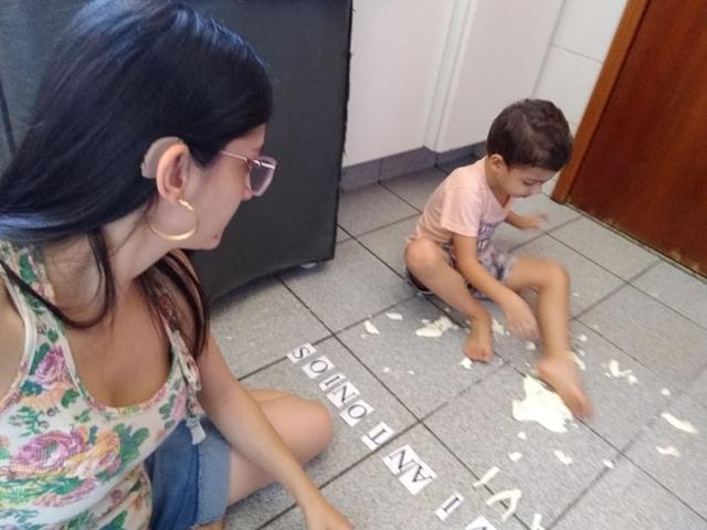 Basta separar uma bolinha de massa para cada letra. Eu fiz umas fichas com as letras para que o Davi Antonios possa consultar enquanto está modelando todas elas. Davi adorou! #maeemdia #brincarjunto #tempojunto #maternidadereal #maternidadeativaeconsciente #educandocomamor #DaviAntonioscom3anose11meses