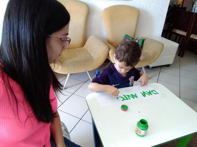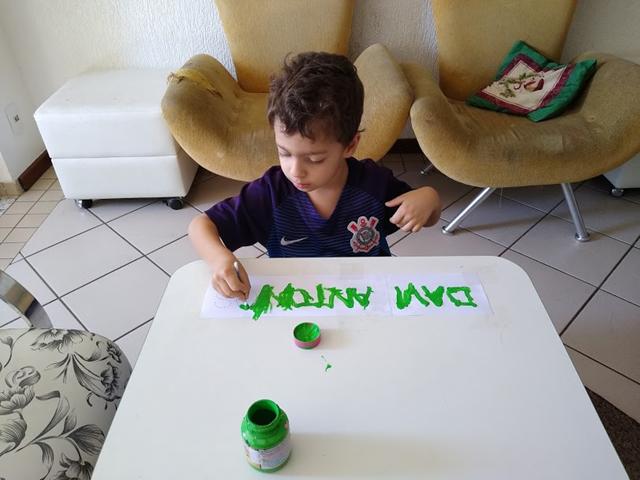 Estratégia para trabalhar o nome, até chegar a escrita de fato, temos um divertido processo a percorrer. Davi Antonios amou! #maeemdia #brincarjunto #tempojunto #maternidadereal #maternidadeativaeconsciente #educandocomamor #DaviAntonioscom3anose11meses