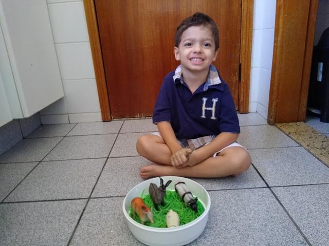 Filho, fecha os olhos que a mamãe realizou uma atividade para você brincar. Ele andou junto comigo e abriu os olhos com um sorriso bem gigante.