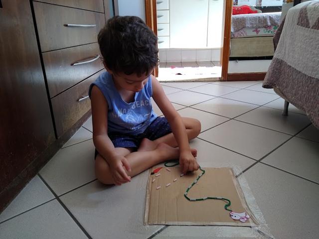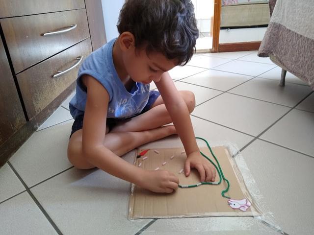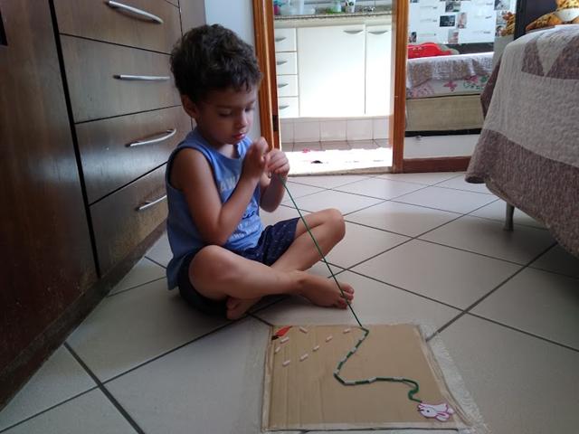 O caminho do coelho :) O alinhavo é uma atividade super importante para o desenvolvimento da concentração e da coordenação motora.