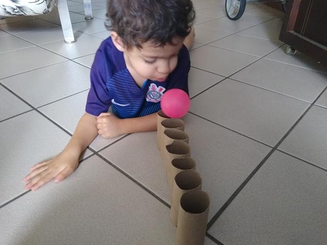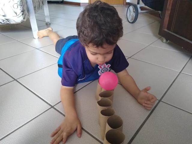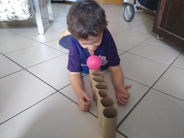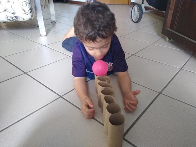 Rolo de papel higiênico + bolinha de plástico = diversão! Duas atividades: transferência e o sopro de bolinha de plástico com rolos de papel higiênico. Super divertida essa brincadeira que usa materiais simples e trabalha a coordenação motora, controle respiratório e muto mais. Davi gostou bastante. #maeemdia #brincarjunto #tempojunto #maternidadereal #maternidadeativaeconsciente #educandocomamor #DaviAntonioscom3anose11meses
