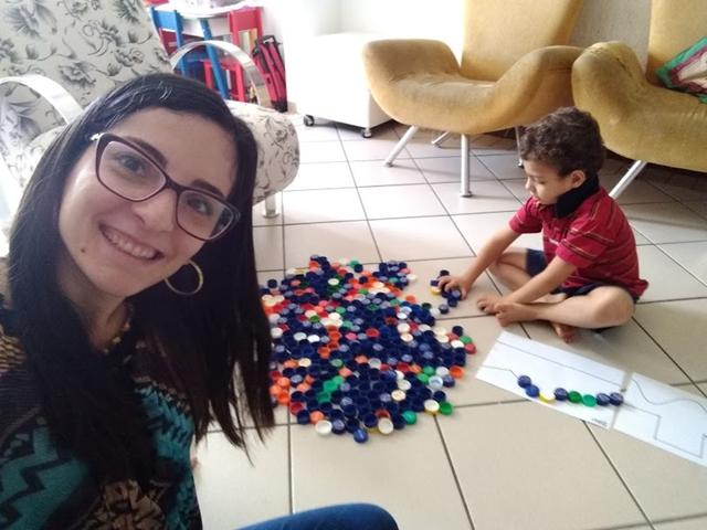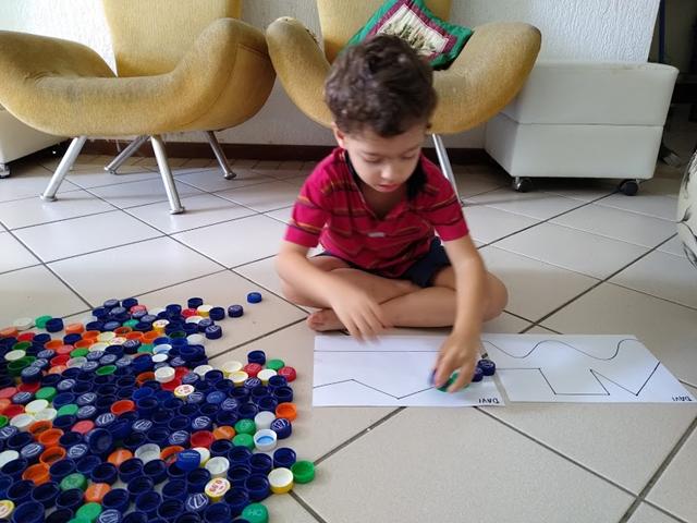 Dica do dia: LINHAS RETAS E LINHAS CURVAS. Não joguem tampinhas no lixo elas podem virar um brinquedo. Com pouquíssimos recursos é possível construir uma atividade divertida e enriquecedora! O desafio é colocar as tampas em seu contorno das linhas retas e linhas curvas. Davi Antonios curtiu muito. #maeemdia #brincarjunto #tempojunto #maternidadereal #maternidadeativaeconsciente #educandocomamor #DaviAntonioscom3anose11meses