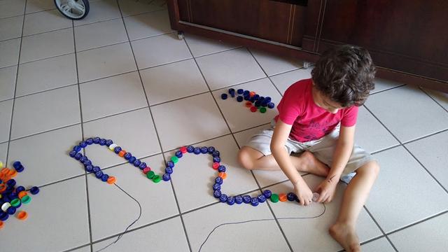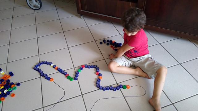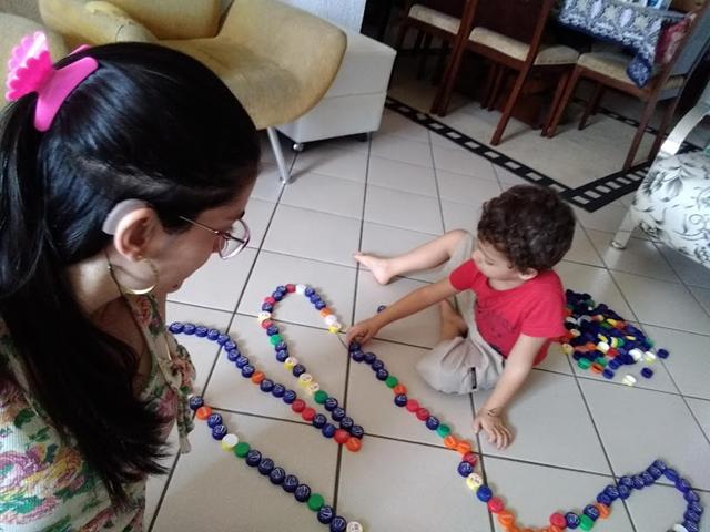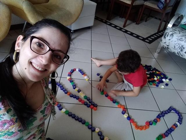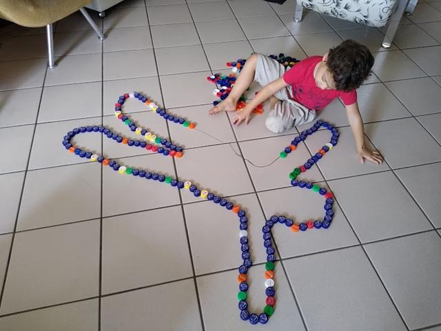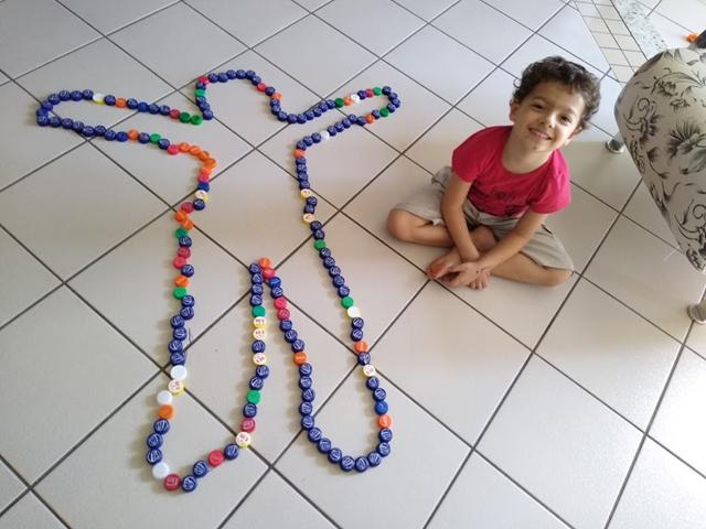 Uma atividade muito legal: ESQUEMA CORPORAL COM TAMPINHAS DE GARRAFA PET.