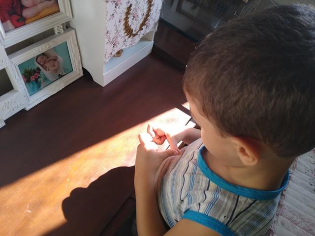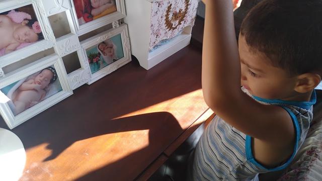 Bom dia, o sol brilha pela janela ☀ :) acordamos animados e fomos à janela ver esse dia lindo. Nossa atividade aconteceu no quarto da Helena em um dia de sol.