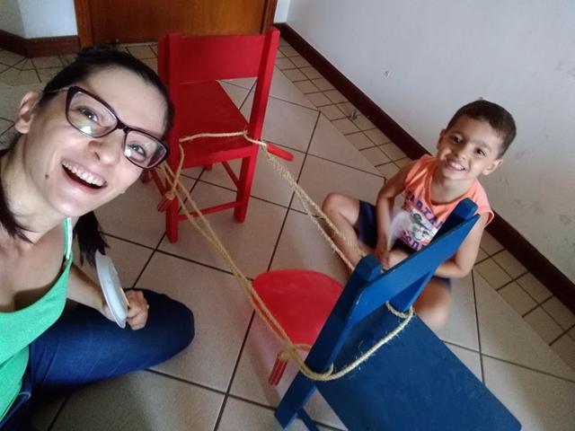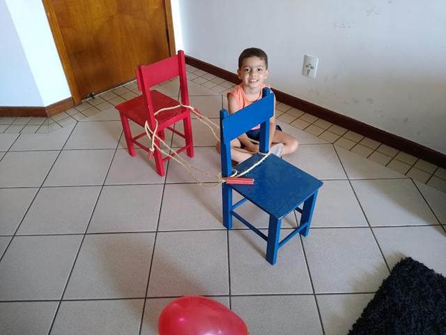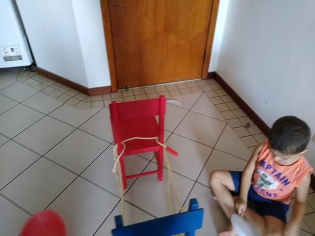 Prenda um palito de picolé no pratinho que ele se transforma em uma raquete de tênis. Depois, é só se divertir com a bexiga! Para ficar mais legal, coloquei duas cadeiras e amarrei corda pra ser a “rede”. E pronto, cada um para um lado e de olho no lance. #maeemdia #brincarjunto #tempojunto #maternidadereal #maternidadeativaeconsciente #educandocomamor #DaviAntonioscom4anose1mes