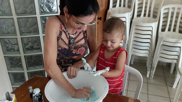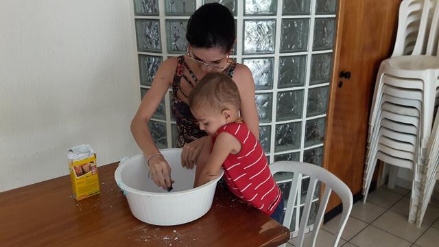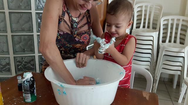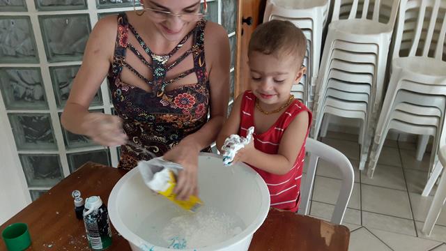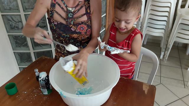 Hoje uma receita muito simples de massa de modelar (Espuma de barbear + amido de milho + corante alimentício azul). Diferente e super divertida!! Não importa a idade, toda criança adora brincar com massinha! Além de soltar a imaginação dando forma às ideias incríveis que só as crianças têm, a massinha também é uma atividade sensorial que contribui para o desenvolvimento cognitivo do meu pequeno!... Ela tem uma textura fofinha incrível que lembra uma espuma, para dar a sensação que ele está brincando com as nuvens!! Ele amou!!.. #maeemdia #brincarjunto #tempojunto #maternidadereal #maternidadeativaeconsciente #educandocomamor #DaviAntonioscom1anoe10meses