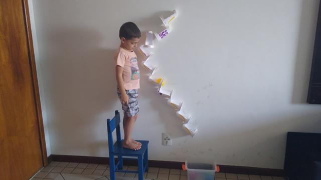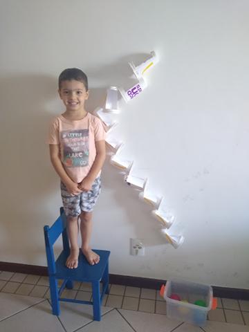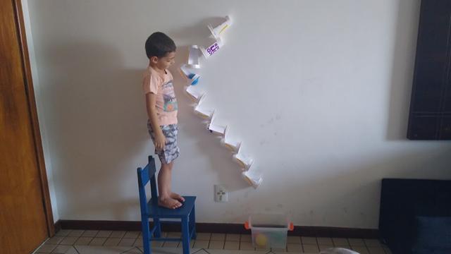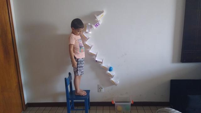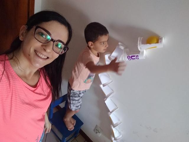 Às vezes eu penso "ai mas vai dar um trabalhão fazer algo assim..." mas aí lembro que comprar um brinquedo que seja levemente parecido vai custar um montão e provavelmente vai ser usado por pouco tempo. E penso nos benefícios de algo tão simples, quantas coisas vão passar na cabeça da criança vendo a bola se mover como mágica, vendo que um simples movimento de soltar a bola em cima faz essa reação. Vale a pena né! Vamos brincar? #maeemdia #brincarjunto #tempojunto #maternidadereal #maternidadeativaeconsciente #educandocomamor #DaviAntonioscom4anose1mes