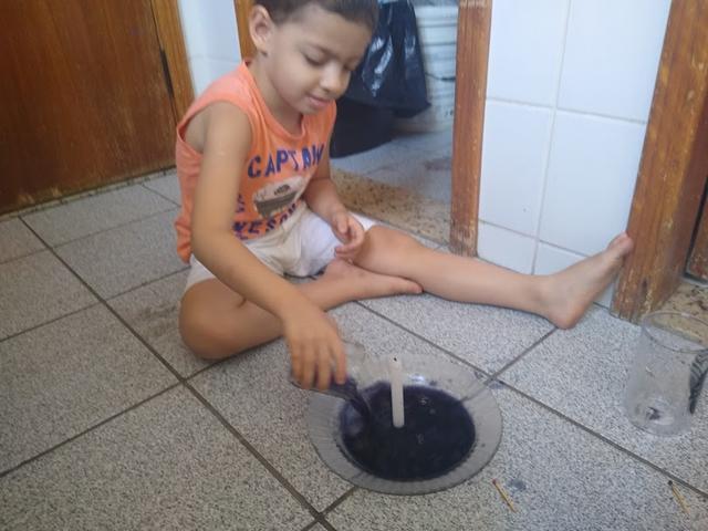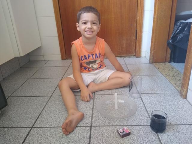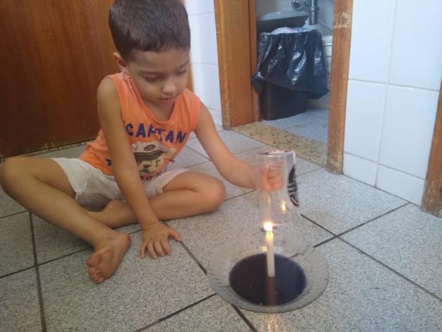 A explicação dessa experiência é que quando você coloca o copo em cima da vela ele se enche de ar quente e todo o ar frio que há dentro dele sai. Quando o copo é colocado em cima da vela, por causa da diminuição do oxigênio a chama vai diminuindo. À medida que a chama vai diminuindo a temperatura do ar dentro do copo vai diminuindo também e quando a temperatura de um gás cai, a pressão desse gás diminui e é o que acontece no copo, sendo esse o motivo pelo o qual a água entra, a pressão diminui e compete com a pressão atmosférica, e ela ‘perde’ essa competição. É a pressão atmosférica que faz a água entrar no copo. #maeemdia #brincarjunto #tempojunto #maternidadereal #maternidadeativaeconsciente #educandocomamor #DaviAntonioscom4anose1mes