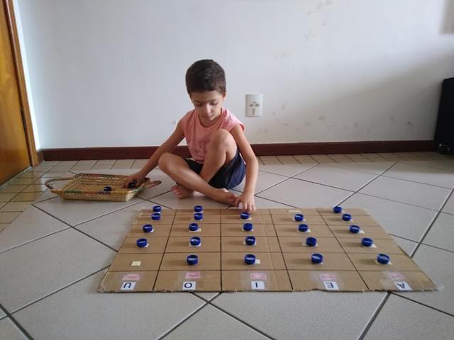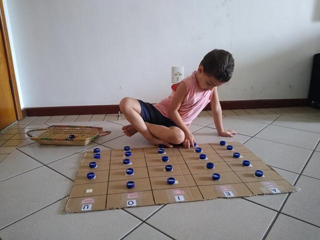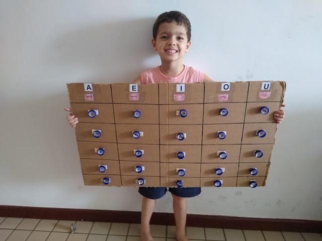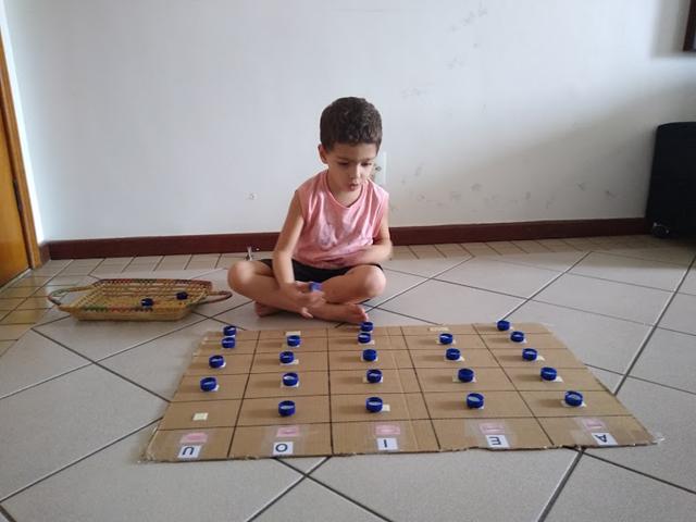 Ensinar e aprender explorando os cinco sentidos não é difícil: V O G A I S! Atividade divertida e simples que envolve poucos recursos para trabalhar o som inicial de palavras iniciadas por vogais e o método das boquinhas: TAMPINHAS DE GARRAFA PET. Brincando e aprendendo! Davi Antonios gostou bastante. #maeemdia #brincarjunto #tempojunto #maternidadereal #maternidadeativaeconsciente #educandocomamor #DaviAntonioscom4anose2meses
