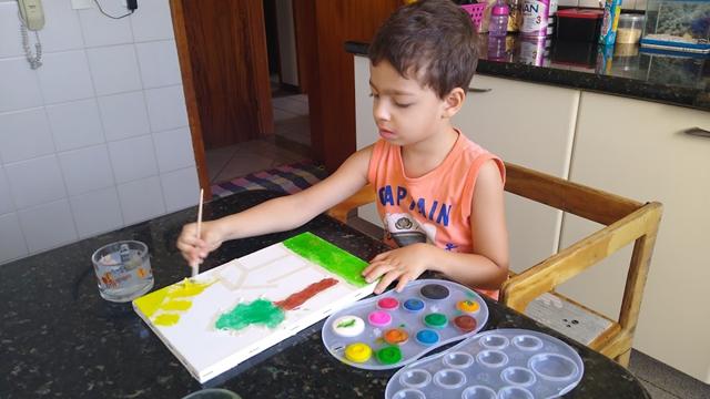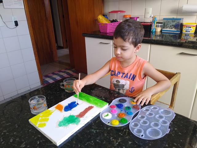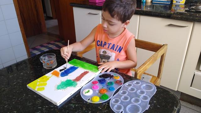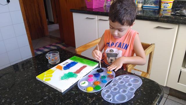 A pintura é capaz de exercitar a criatividade infantil durante horas usando poucos recursos.