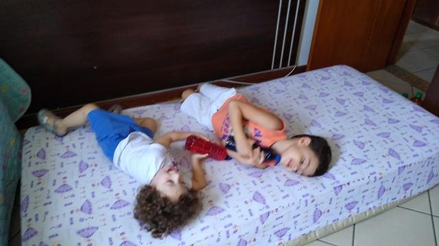 Desafio maluco. Usamos: colchão e garrafas. Corpo, gesto e movimento. As crianças se divertiram muito! #maeemdia #brincarjunto #tempojunto #maternidadereal #maternidadeativaeconsciente #educandocomamor #DaviAntonioscom4anose2meses #Helenacom2anose1mes