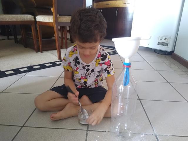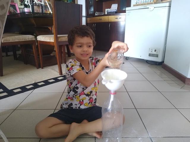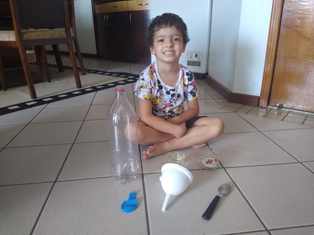 Uma experiência fácil e divertida, usando garrafa pet, funil, balão de festa, vinagre e bicarbonato de sódio.