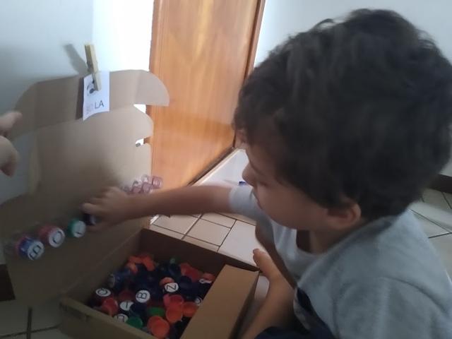 10) Encontrar as tampinhas de garrafa pet de acordo com o cartão da palavra;