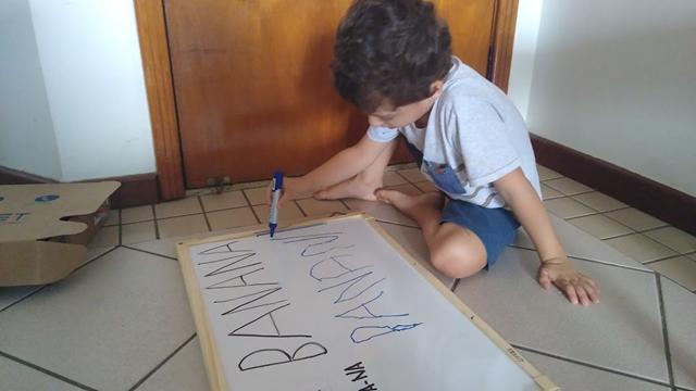 12) Aprendendo a escrever e leitura em voz alta: escrita das sílabas e palavras em letra bastão. #maeemdia #brincarjunto #tempojunto #maternidadereal #maternidadeativaeconsciente #educandocomamor #DaviAntonioscom4anose3meses