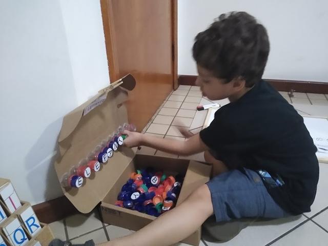 10) Encontrar as tampinhas de garrafa pet de acordo com o cartão da palavra;