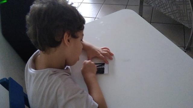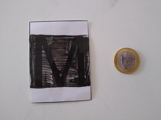 1) Arranhar com a moeda para descobrir a surpresa da letra (Materiais: canetinha preta + fita adesiva transparente)
