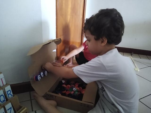 10) Encontrar as tampinhas de garrafa pet de acordo com o cartão da palavra;