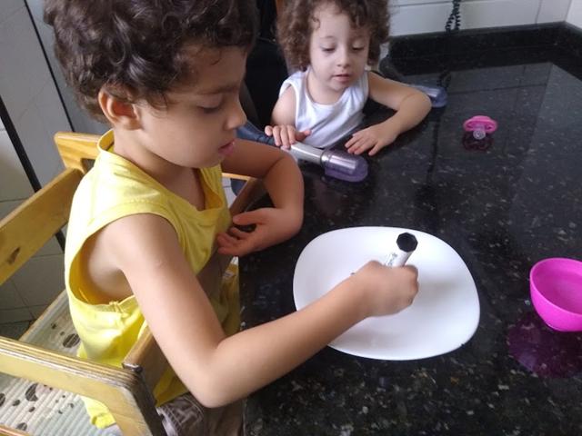 A explicação dessa experiência: Essa mágica acontece porque a tinta da caneta especial para quadro branco é insolúvel na água. São compostos por uma substância oleosa à base de silicone. A razão para o uso da substância é que ela impede que a tinta grude de forma permanente nos quadros. Como óleo e água não se misturam, a tinta é capaz de se mover conforme a bolha de água também o faz. Assim, ao soprá-la, você verá seu boneco palito “dançando”. As crianças amaram muito essa experiência. #maeemdia #brincarjunto #tempojunto #maternidadereal #maternidadeativaeconsciente #educandocomamor #DaviAntonioscom4anose4meses