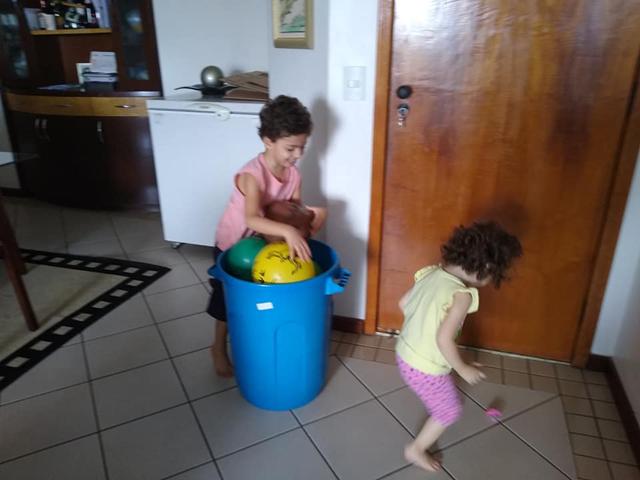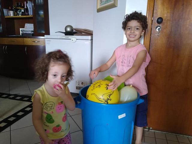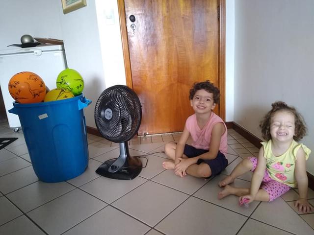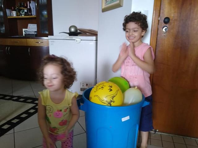 Mais uma semana concluída com sucesso, então vamos brincar!? Um ventilador, balões coloridos e um cesto: é tudo que você precisa para se divertir muito! O ar (do ventilador) vai fazer com que os balões “andem” pelo teto de um lado para o outro. As crianças ficaram encantadas com essa agitação sobre sua cabeça. #maeemdia #brincarjunto #tempojunto #maternidadereal #maternidadeativaeconsciente #educandocomamor #DaviAntonioscom4anose4meses #Helenacom2anose2meses
