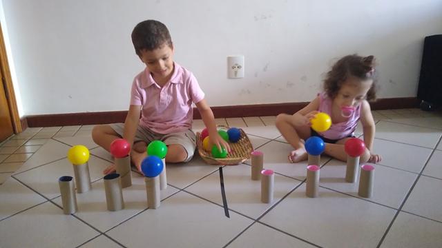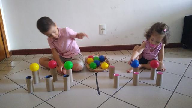 Essa brincadeira indica com dois jogadores colocando as bolinhas de plástico em cima do rolo de papel higiênico. Ganha quem terminar primeiro. #maeemdia #brincarjunto #tempojunto #maternidadereal #maternidadeativaeconsciente #educandocomamor #DaviAntonioscom4anose5meses #Helenacom2anose3meses