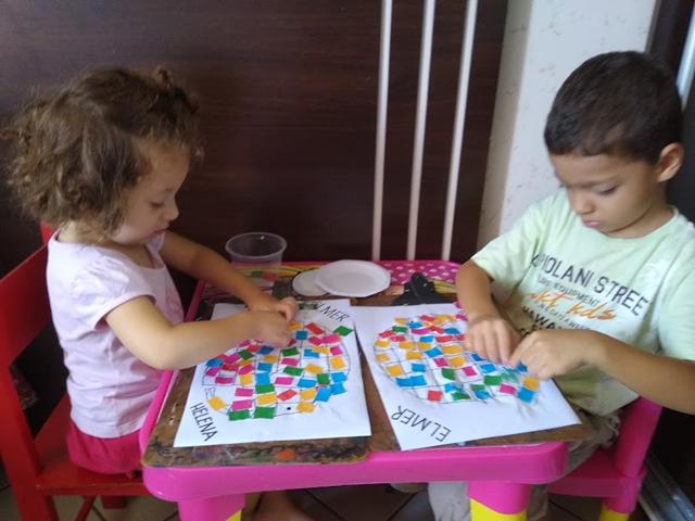 Recortei papéis em forma de quadrados nas cores: amarelo, vermelho, rosa, azul e verde. Disponibilizei os papéis e a cola à disposição das crianças e deixem que se envolvam e soltem a imaginação colorindo o elefante! As crianças amaram bastante. #maeemdia #brincarjunto #tempojunto #maternidadereal #maternidadeativaeconsciente #educandocomamor #DaviAntonioscom4anose5meses #Helenacom2anose3meses