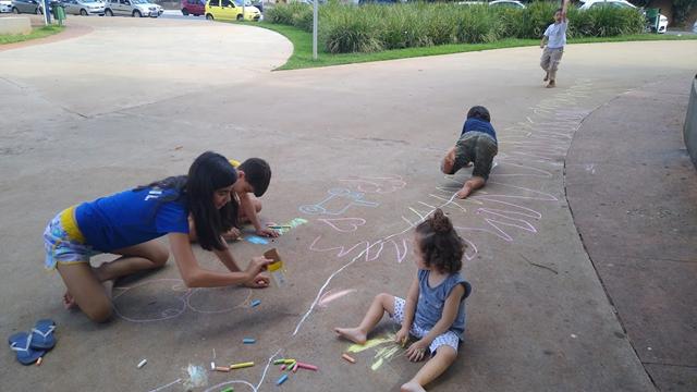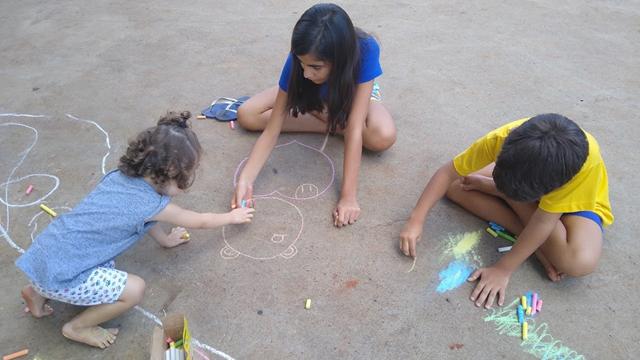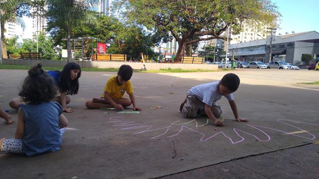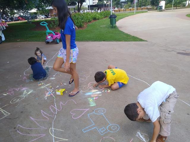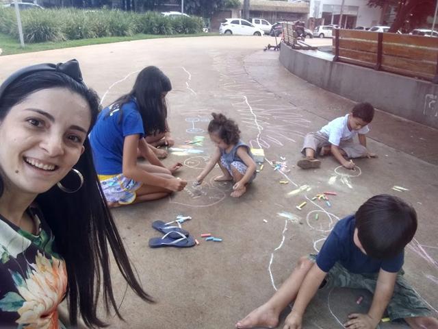 Atividade do dia: DESENHANDO NO CHÃO DA PRAÇA COM GIZ COLORIDO.