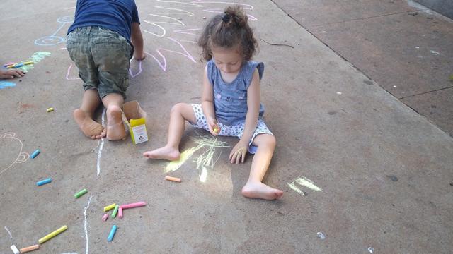 É muito divertido brincar com giz! As crianças amaram muito. #maeemdia #brincarjunto #tempojunto #maternidadereal #maternidadeativaeconsciente #educandocomamor #DaviAntonioscom4anose5meses #Helenacom2anose3meses
