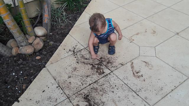 "Disse também Deus: Ajuntem-se às águas debaixo dos céus num só lugar, e apareça a PORÇÃO SECA. E assim se fez. À porção seca chamou Deus TERRA... " Gênesis 1: 9-10 Então vamos começar a semana do MARROM....e nada melhor do que muitaaaaaaa TERRA para comemorar... Ontem, Davi fez a festa!! #maeemdia #brincarjunto #tempojunto #maternidadereal #maternidadeativaeconsciente #educandocomamor #DaviAntonioscom1anoe5meses