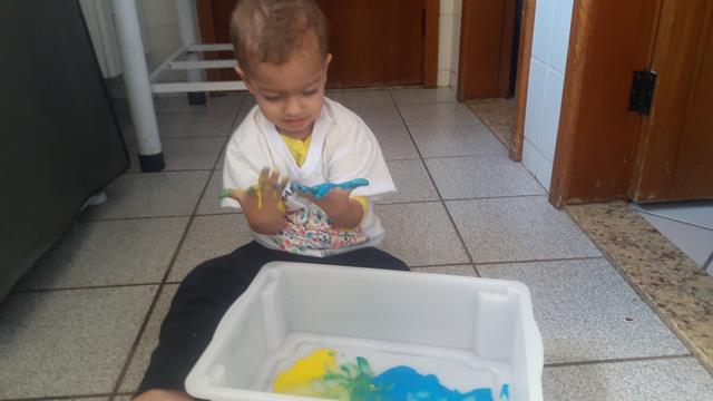Divertida, uma delícia de brincar e muito fácil de fazer. A mamãe colocou tinta guache nos copinhos. Em cada um, cor diferente. Depois acrescente amido de milho e um pouco de água em cada um dos copinhos. Pode sentir a mistura mole, quando coloca os dedos devagar. Porém ela é dura quando se coloca os dedos rapidamente. Deixei que o meu pequeno despejasse as misturas em uma caixa organizadora de plástico e depois manusear com os dedos e mãos, misturando lentamente as cores como amarelo e azul. Esta atividade estimula os movimentos mãos e dedos, sensação tátil, proprioceptivas e visuais. Trabalhando as cores, a concentração e a criatividade. Muito legal não é?!! ELE DIVERTIU BASTANTE. #maeemdia #brincarjunto #tempojunto #maternidadereal #maternidadeativaeconsciente #educandocomamor #DaviAntonioscom1anoe11meses