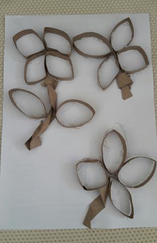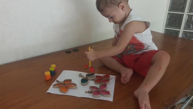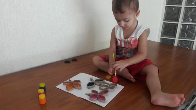 Que tal fazer lindas flores com rolinhos de papel higiênico que normalmente vão para o lixo??!! Jogar fora? CLARO QUE NÃO!!! Reciclar e reutilizar o rolo do papel higiênico é criar junto com o meu pequeno... Rolo de papel higiênico se transforma em uma linda flor quando colados em um papel. Então, a mamãe colocou muitas flores feitas com o rolo no papel, lógico antes de cortar os rolos eu pedi para o Davi Antonios pintar com tinta guache.