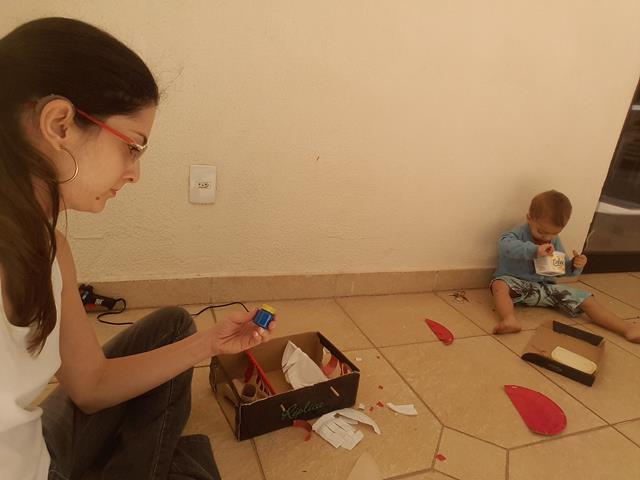 Filho, que carro SUJO! Vamos levar o carro pra lavar? A mamãe inventou uma brincadeira bem simples que foi criada uma caixa de sapato, palito de churrasco, prato descartável, prato papel colorido e rolo de papel higiênico. São os ingredientes desse brinquedo super legal.