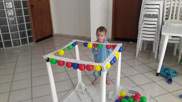 Davi Antonios começou a colar as bolinhas na parte adesiva da fita, assim passou a colocar e retirar a bolinha. O “pequerrucho” da mamãe trabalhou bastante e aprendeu mais uma nova atividade sensorial com bolinhas coloridas e fita adesiva. Desenvolve a persistência, paciência, coordenação motora fina, percepção visual, estimula a força de preensão palmar, equilíbrio, atenção, lateralidade...
